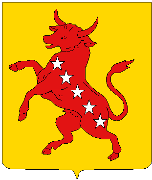 d or au taureau furieux de gu chargé de 5 étoiles d argt mises en bande sur le corps du taureau