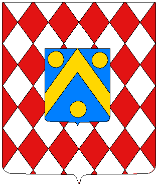 losangé d argt et de gu et un écusson d az brochant sur le tout chargé d un chevron d or acc de 3 besans du mesme