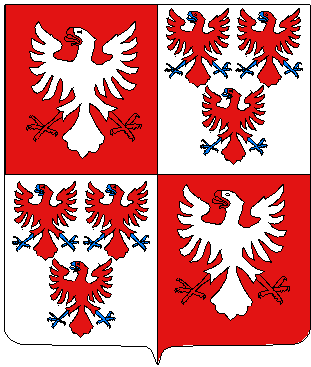 ecartelé aux 1 et 4 de gu à l aigle d argt becquée et membrée de gu aux 2 et 3 d argt à 3 aigles de gu becquées et membrées d az