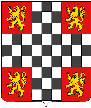 de gu à la croix échiquetée d argt et de sab de 3 traits cantonnée de 4 lionceaux d or Bien cadrer la croix échiquetée par rapport au bord