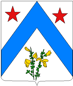 d argent au chevron d az acc en chef de 2 étoiles de gu et en pointe d un genêt de sin