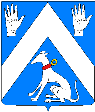 d az au chevron d argt acc en chef de 2 mains appaumées du mesme et en pointe d un lévrier assis d argt colleté de gu et bouclé d or