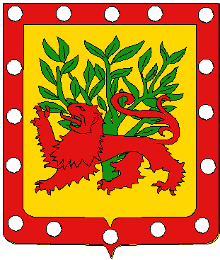 d or au laurier terrassé de sin au lion léopardé de gu brochant sur le fût de l arbre à la bordure de gu chargée de 16 besans d argt