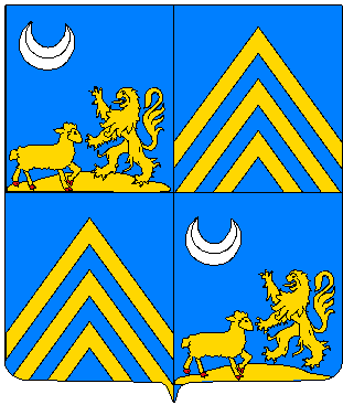 d azur à un agneau d argt contourné paissant sur un tertre d or mouvant de la pointe de l écu surmonté au canton senestre du chef d un croissant d argt et senestré d un lion d or dressé écartelé d az à 3 chevrons d or - commencer par les trois chevrons puis l onglet écartelé en 3 et 4 ensuite l agneau est contourné par le menu dessiner/retourner- pour le tertre choisir terrasse dans les dessins la catégorie element/terre air eau feu puis copier/coller les meubles du 1 vers le 4 par crtlc et ctrlv ou par le menu edition/copier et coller ou par les boutons en haut copier/coller