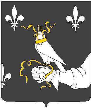 de sab à un faucon d argent longé et grilleté d or posé sur une main gantée du mesme acc en chef de 2 fleurs de lys d argt et en pointe d une demi fleur de lys mouvante de l extrémité du flanc dextre de l écu