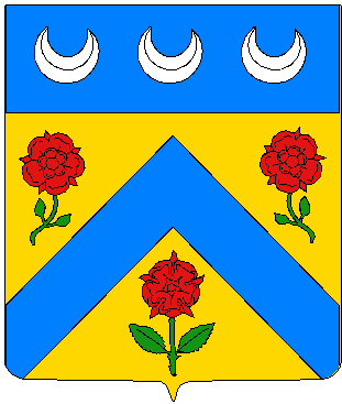 d or au chevron d az acc de 3 roses de gu tigées feuillées de sin au chef d az chargé de 3 croissants d argt