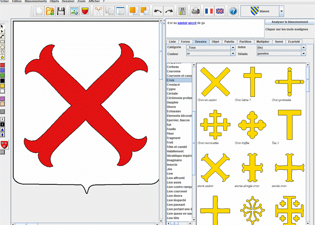 Pour obtenir le « sautoir ancré » , ouvrir l’onglet « Dessins » et la rubrique « Croix ».