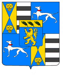 d'or et parti d'argent à 3 fasces de sable, aux 2 et 3 d'azur à un lévrier
