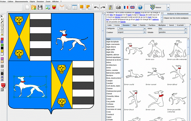 le lévrier accolé de gueules. Choisir « argent » comme couleur. Le